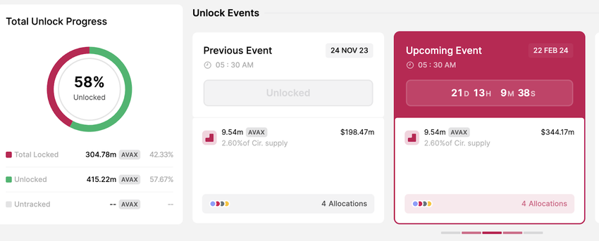 2024年2月最大のトークン・ロック解除:3億4400万ドルのAVAXロック解除