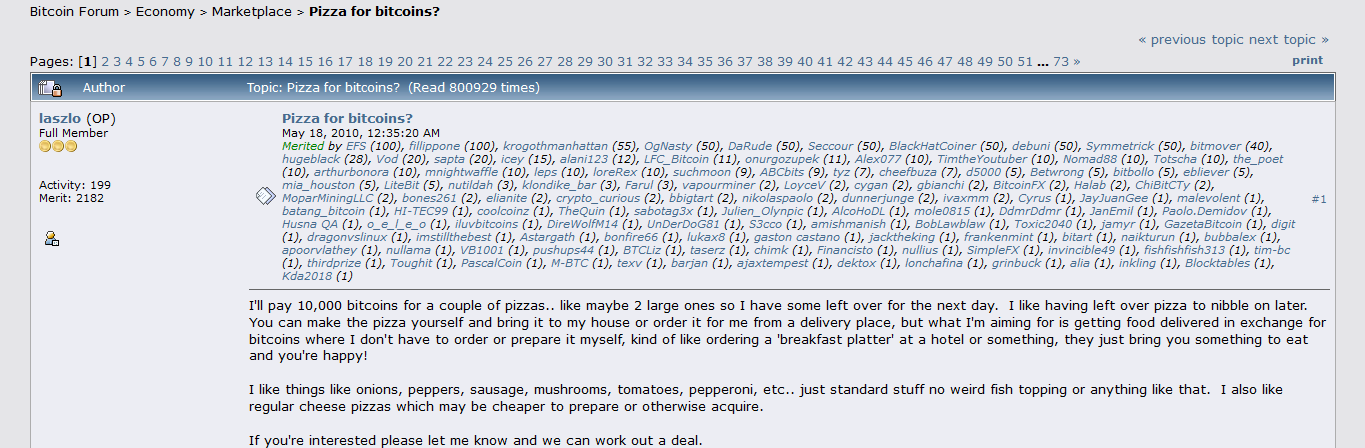 毎年5月22日、暗号資産コミュニティは「Bitcoin Pizza Day」を祝う。この歴史的な出来事は2010年に起こった。ビットコイン開発者のLaszlo HanyeczがBitcointalkフォーラムを通じて2枚のPapa John’sのピザに10,000BTCを支払ったのだ。