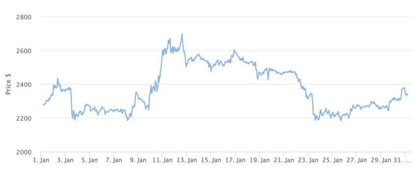 発表時点のイーサリアム価格は2,338ドル。この予測はイーサリアム価格の70%上昇を意味する。
