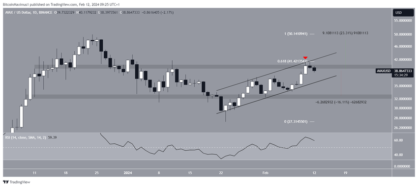 2月10日、チャネルのレジスタンス・トレンドラインがAVAXの価格を拒否した(赤のアイコン) 。 さらに、この拒否は40ドルのレジスタンスエリアと一致した。