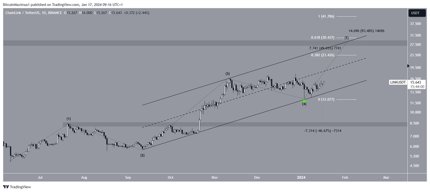 Sponsored Sponsored最も可能性の高い波動カウントは、LINKが1月3日に上昇の第5波と最終波を開始したことを示唆している(緑色のアイコン)。この動きの大部分は、上昇する平行チャネルの中に含まれており、跳ね返りがそれを立証した。