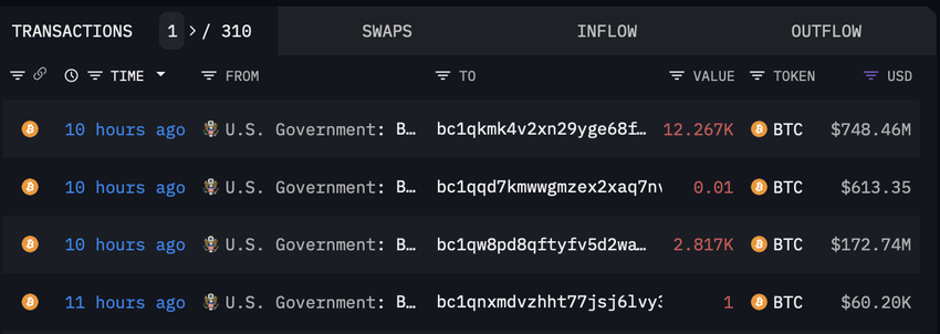 Arkham Intelligenceのデータによると、米国連邦政府はBitfinexのハッキングで押収された資金を保有するウォレットから約9億2140万ドルを送金した。
