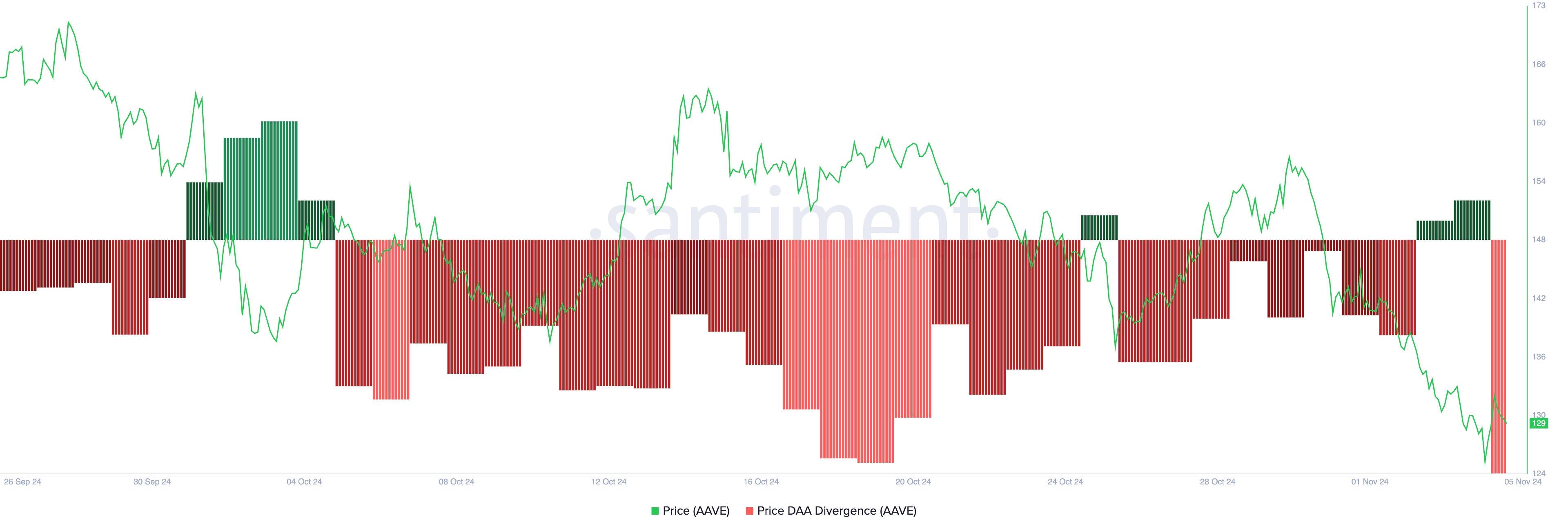 SponsoredAAVEの負の価格日活動アドレス(DAA)の乖離は、市場の売り圧力の増加を確認している。現時点でこの指標の値は-39.24%である。