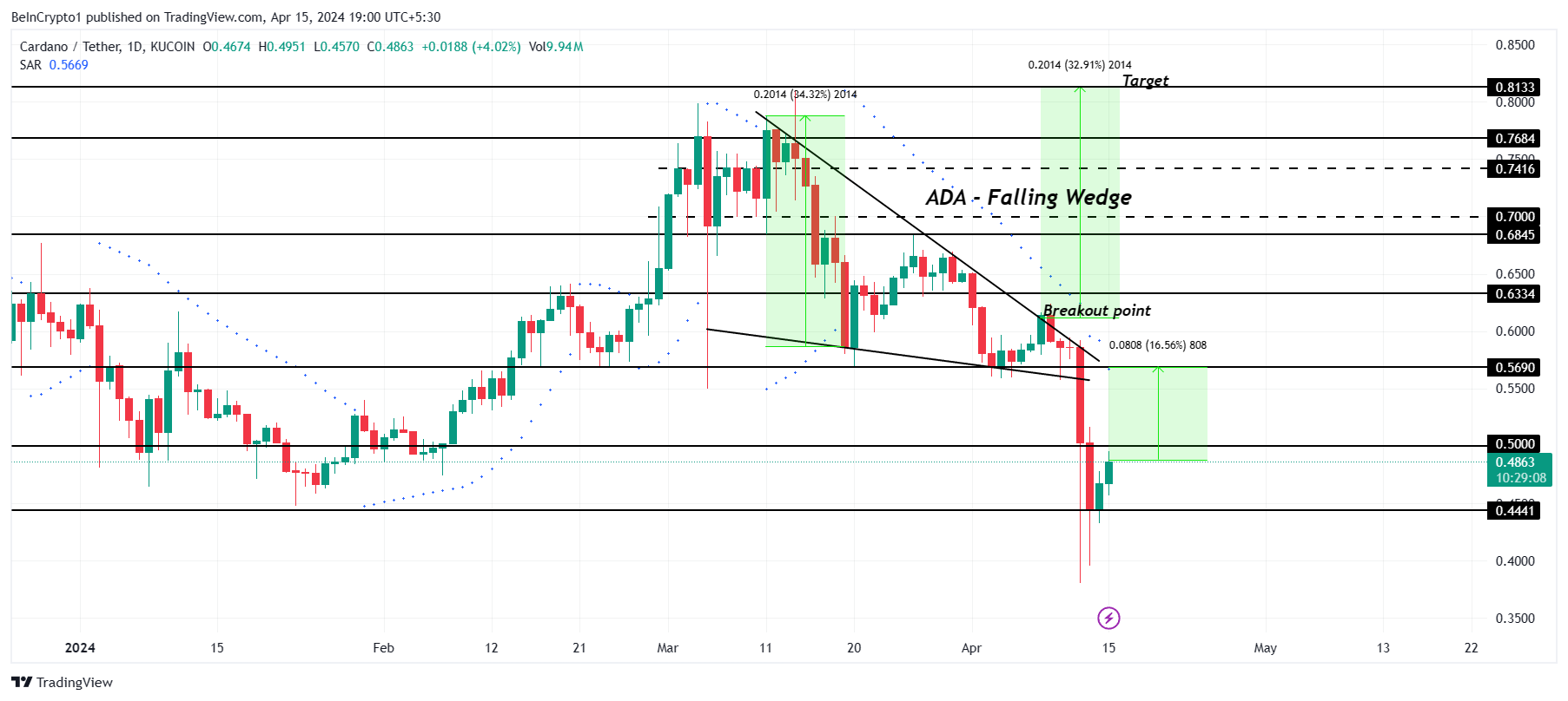0.48ドルで取引されているカルダノの価格は、すでに回復に向かっている。上記の要因を考慮すると、ADAはこの回復を続け、現在の価格より16%高い0.56ドルのサポートを回復する可能性がある。これは、第3世代の暗号通貨にとって25%の上昇となる。