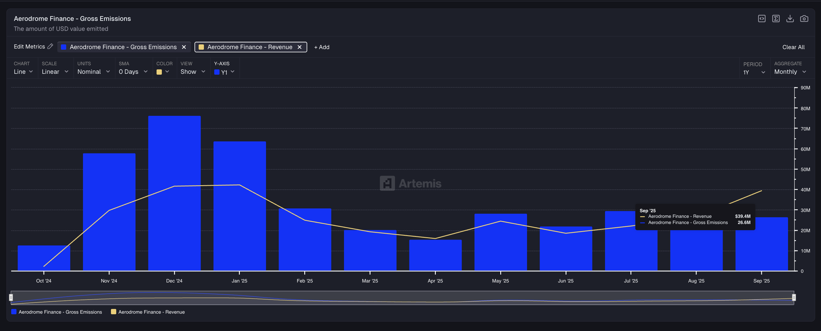 最後に、プロトコルの基礎指標の改善も上昇を後押しした。2025年9月、Aerodrome Financeは収益が排出を上回る節目を達成。
