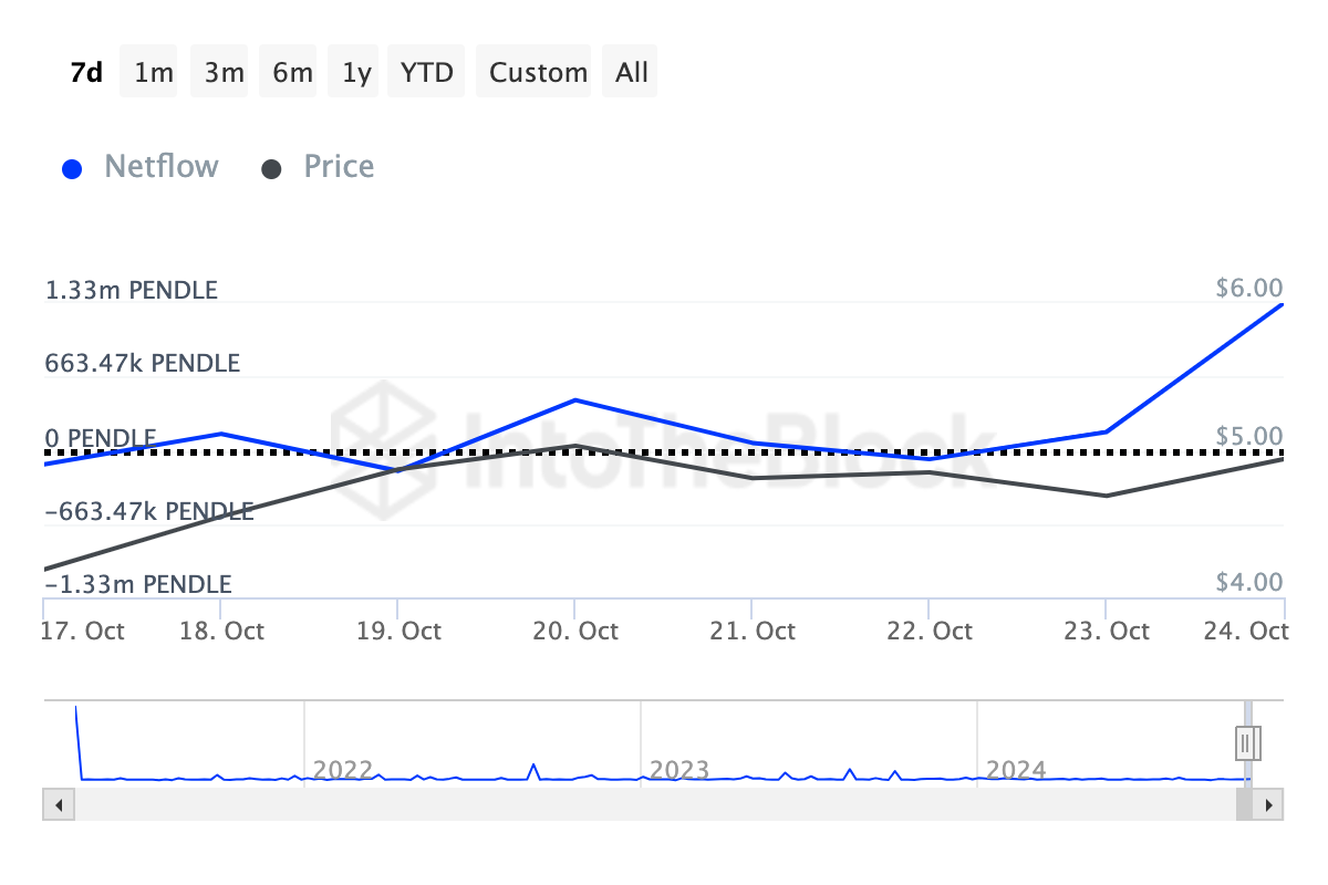 IMXやINJの価格とは異なり、PENDLEは今週プラスのリターンを生み出した。価格が8%上昇する中、クジラはこのトークンを購入し、Pendleプロトコルでの将来の収益の取引を強化した。