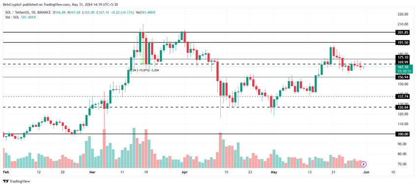 その大半はこの1カ月で1900万ドルに達した。市場は回復傾向にあるため、6月に入ってもこの状況は続くと予想される。したがって、機関投資家がSOLの積み増しを続ければ、ソラーナの価格も上昇し、サポートフロアとして200ドルを回復する可能性がある。