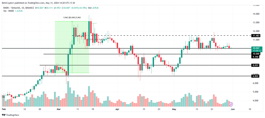従って、成長が続けば、RNDRはブームの可能性から恩恵を受け、11.4ドルと10.0ドルの間の統合から脱出できるだろう。
