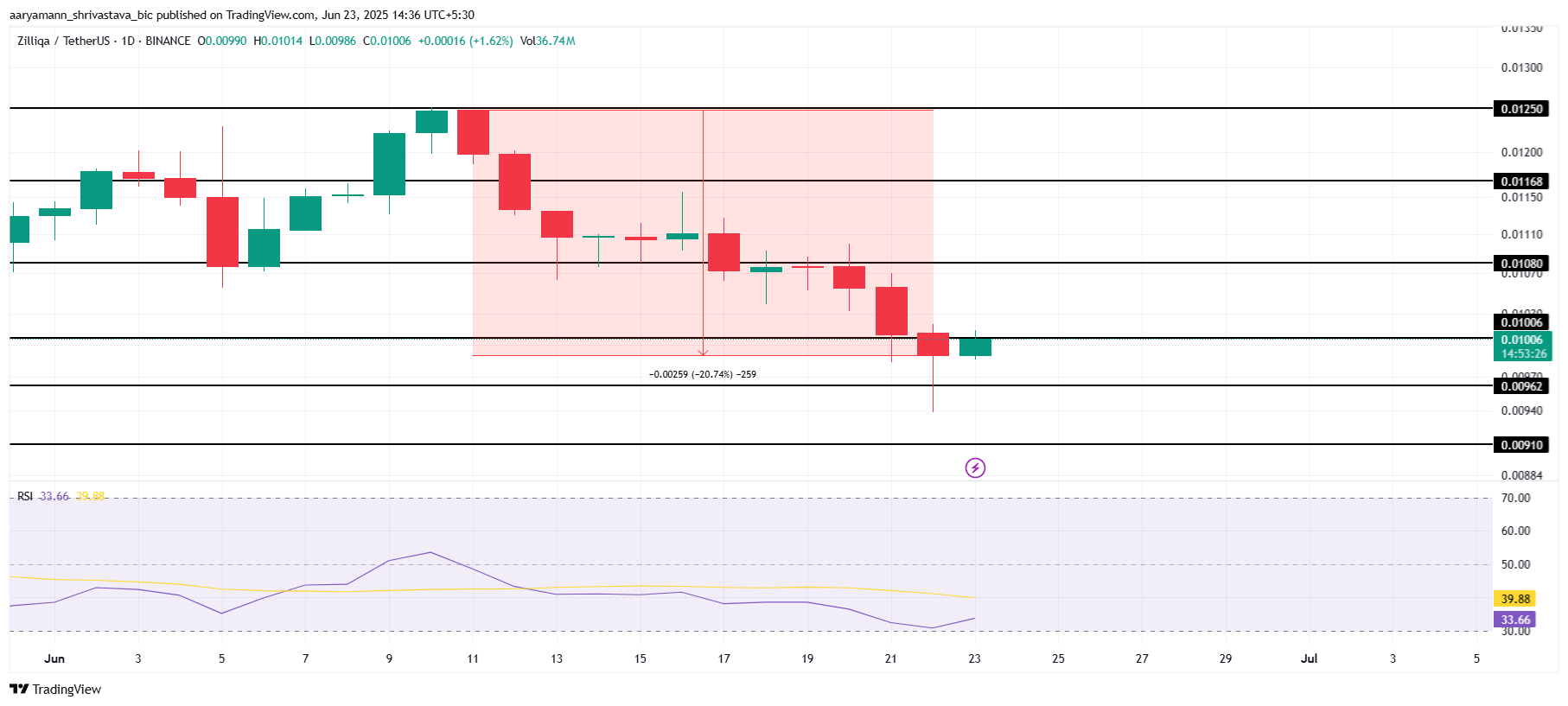もしZILの価格が回復すれば、0.0108ドルの抵抗レベルへの上昇が見込まれる。これにより、今月見られた20%の損失を逆転させ、Zilliqa 2.0への移行による改善が市場条件と一致すれば、さらなる利益をもたらす可能性がある。