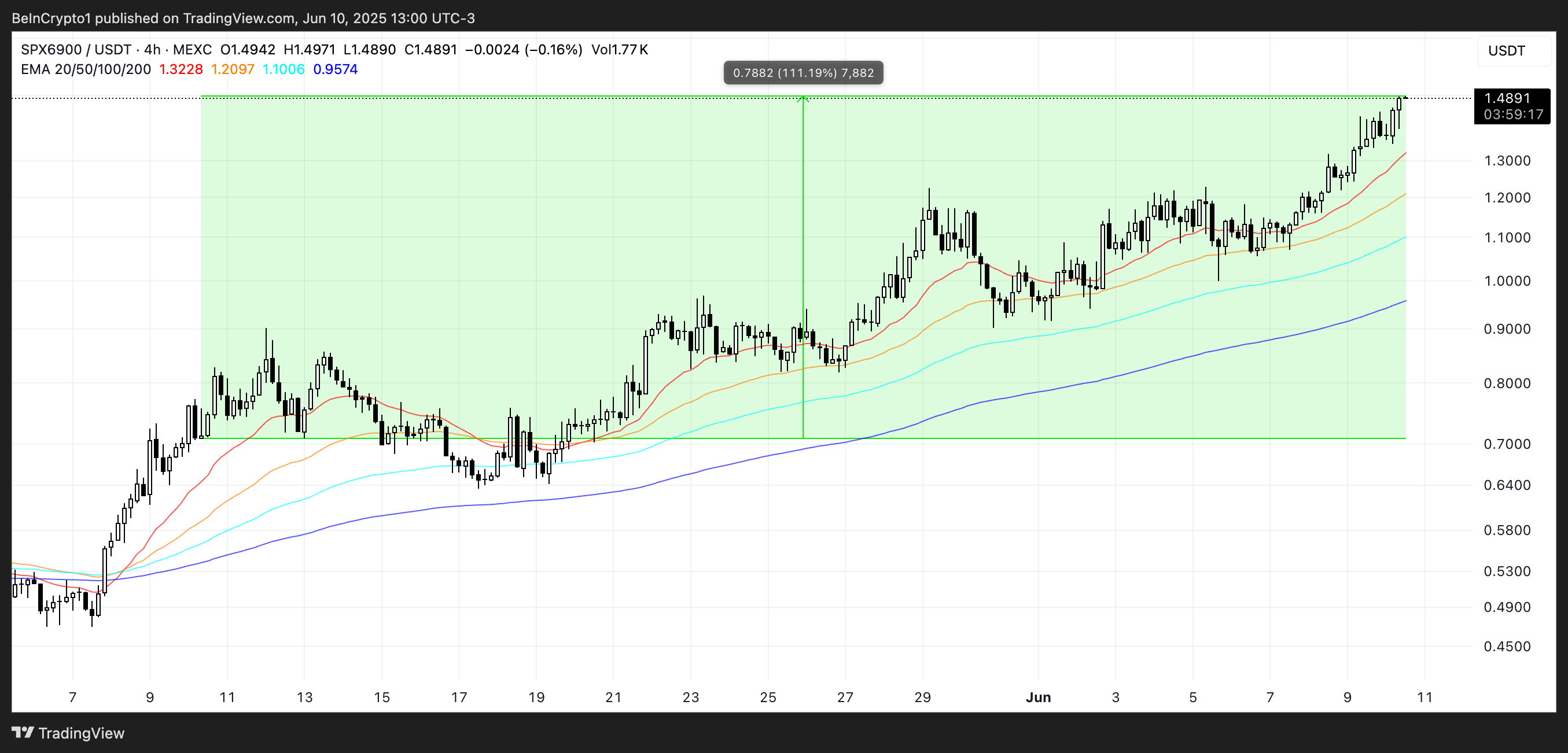 SPX6900は過去数週間で市場で最もホットなミームコインの一つとして浮上し、過去30日間で111%の上昇を記録している。