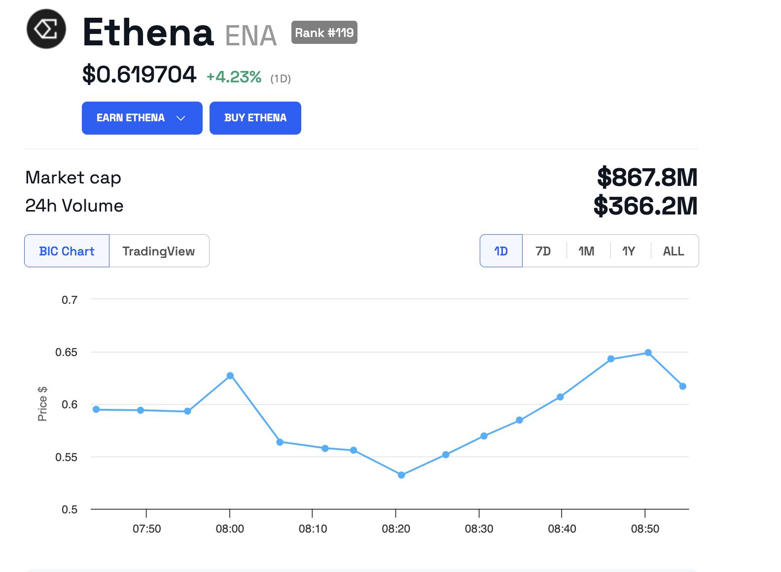 ENAトークンは、4月2日午前8時(UTC)から主要な中央集権的取引所に上場されている。本稿執筆時点では、トークンは0.6197ドルで取引されている。