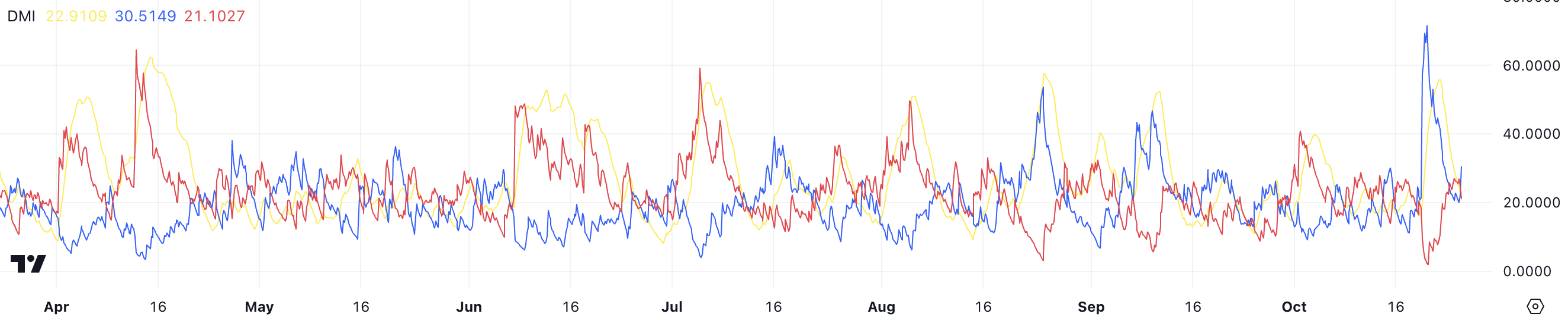 ApeCoin DMI、現在のトレンドは強くない