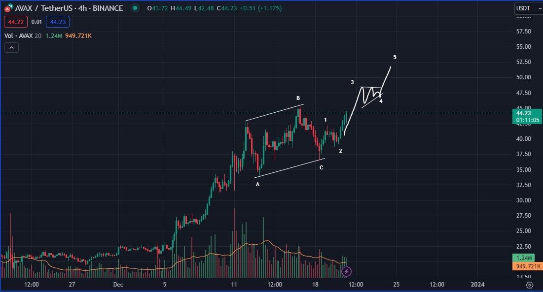 最も可能性の高いカウントは、AVAXが9月に始まった上昇の第5波と最終波にあることを示唆している。