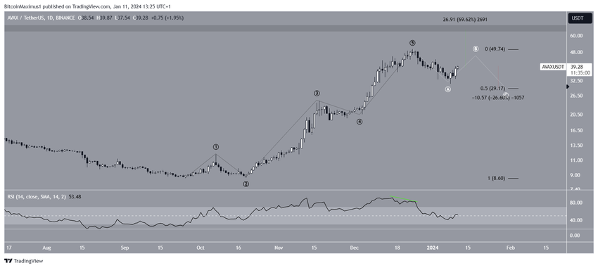 アバランチ(AVAX)価格は2023年12月24日、50ドル近い2023年の高値を付けて以来下落している。