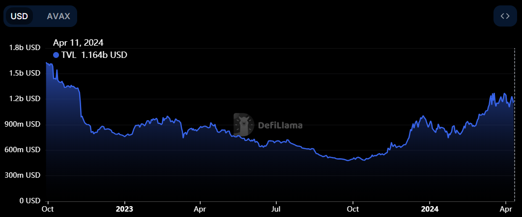 DeFiLlamaのデータによると、Avalancheエコシステム内のTVLは顕著な増加を示しています。この指標は、ユーザーの信頼レベルとネットワークのDeFiプロトコルにコミットされた資本の量を示すため、不可欠である。
