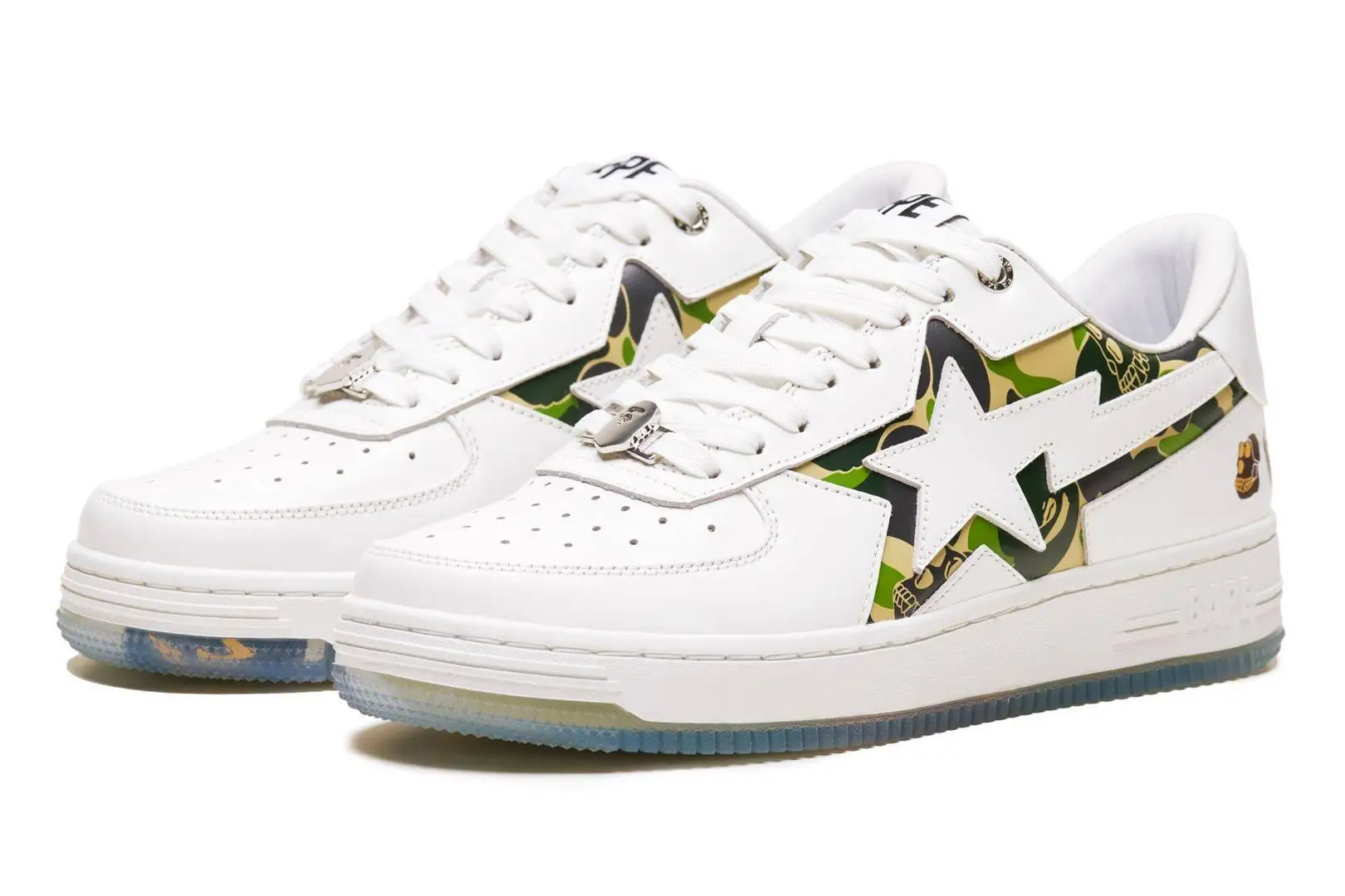 BAPE STAは限定デザインにアレンジされ、ABC CAMOをアッパーに採用し、透明なラバーソールにCurtisをデザインしたユニークな外観を持つ。同スニーカーは全世界で1000足限定生産であり、各足にはシリアルナンバーが記載されている。