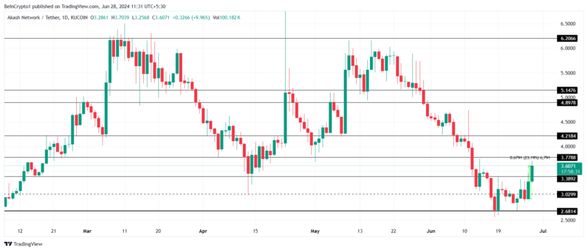 しかし、AKTが3.7ドルの壁を突破できなかった場合、価格は3.38ドル以下まで下落し、現在の強気な見通しを否定する可能性がある。
