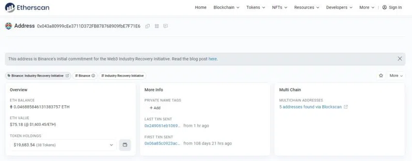 バイナンスは、自社の産業復興資金10億ドルの残りを他の暗号資産(仮想通貨)に交換した。交換後の暗号資産は、ビットコイン、バイナンスコイン、イーサリアム等。