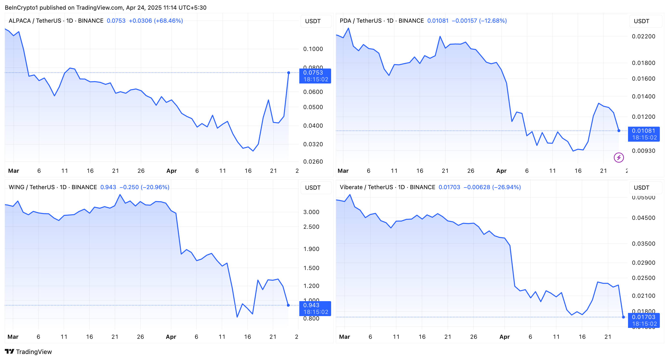 PDA、WING、VIBは発表後に価値が大幅に下落した。しかし、ALPACAはこの傾向に逆らい、プラットフォームからの削除が迫っているにもかかわらず急騰した。