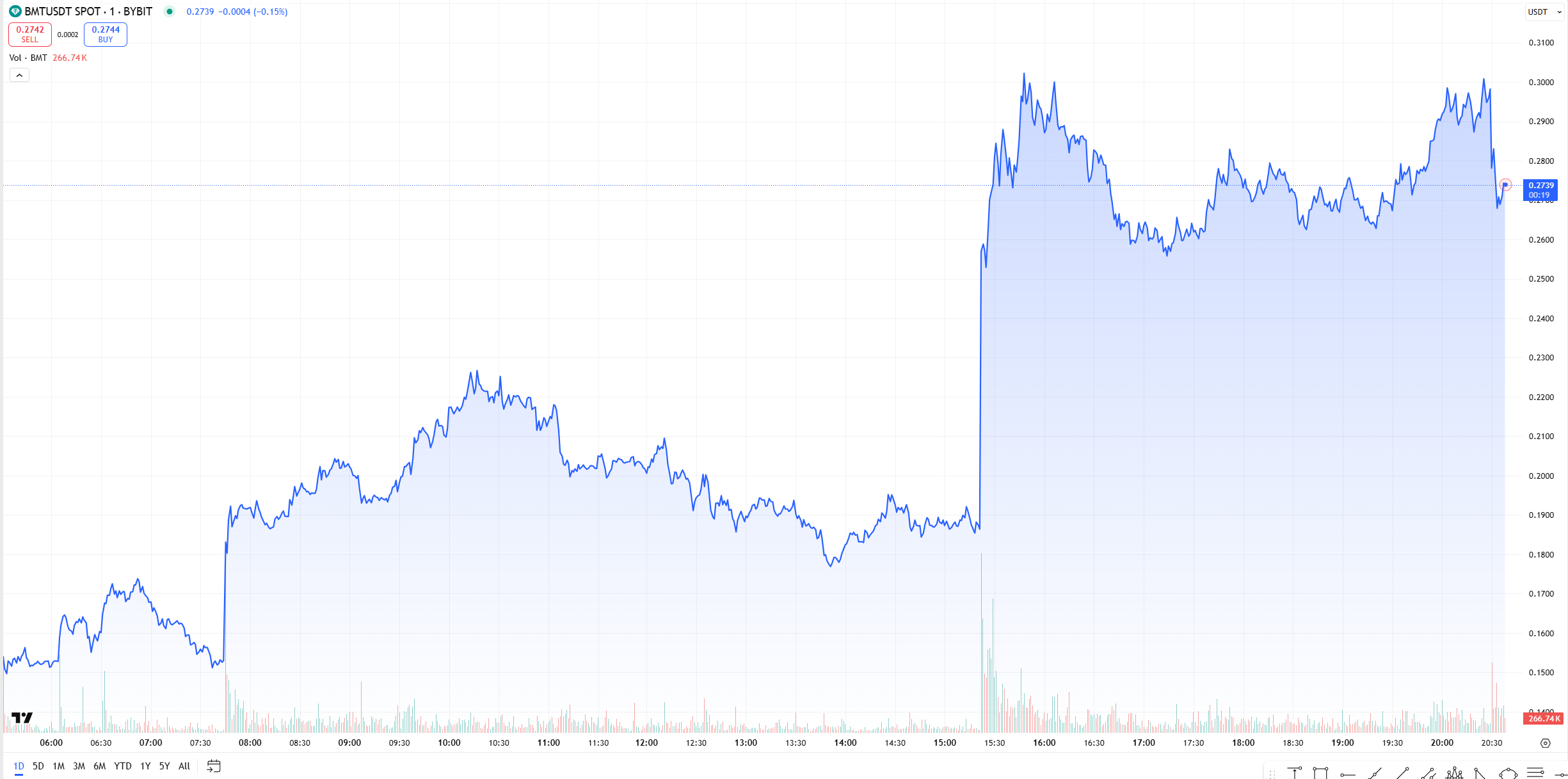 本稿執筆時点で、BMTの価格は今日ほぼ100%上昇し、日次取引量は230%急増している。現在の市場の感情は、新しいトークンに対する大きなブームと投機的な動きがあることを示唆している。