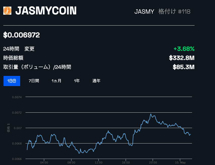 JASMYは日本企業ジャスミーが開発した暗号通貨。ERC-20トークン規格に基づいており、ブロックチェーンとIoTを組み合わせ、活用を目指すプロジェクト。ユーザーが個人情報を完全に制御できるようにすることで、個人データの主権を回復および保護することを目標としており、「情報の民主化」というテーマを掲げている。暗号通貨トラッキングサイトのコインマーケットキャップによると、本稿執筆時点で時価総額は3.2億ドルで、時価総額ランキング102位に位置付けている。