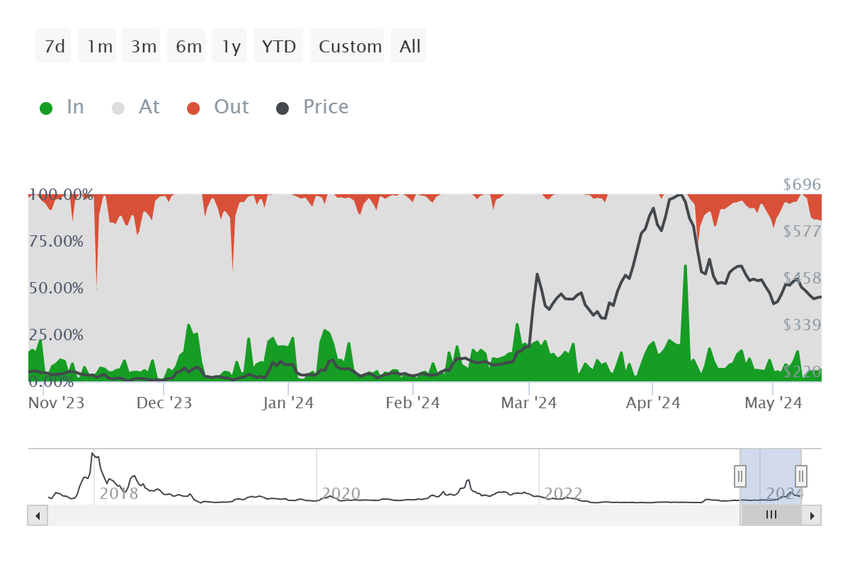 ビットコインキャッシュの価格は現在430ドルで取引されており、重要なサポートを上回っている。このサポートレベルは過去に回復のシグナルを示しており、今後数日間も同じことが予想される。この可能性を後押ししているのは、ここ数日強気に行動しているBCHホルダーたちだ。