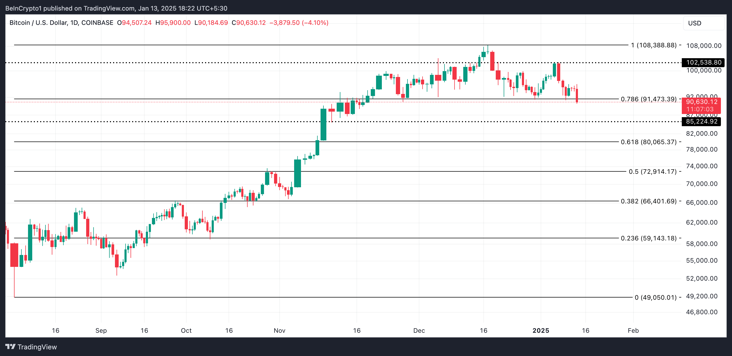 BTCの需要の低下は、トレンドの確認と価格のさらなる下落の可能性を示唆しています。このシナリオでは、コインは9万ドルを下回り、約8万5224ドルで取引される可能性があります。
