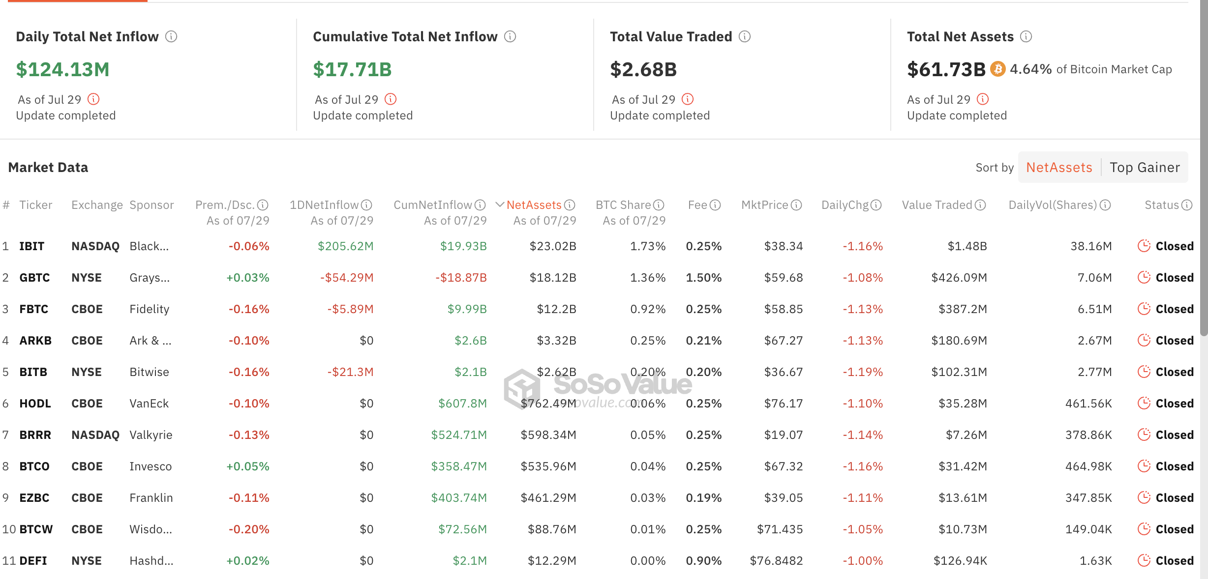 この価格変動は、スポットビットコイン上場投資信託(ETF)への顕著な資金流入と一致した。月曜日、これらのファンドには総額1億2413万ドルの資金が流入した。中でもブラックロックのiシェアーズ・ビットコイン・トラスト(IBIT)は2億562万ドルの資金流入で際立っており、同業他社の中で最高額を記録した。