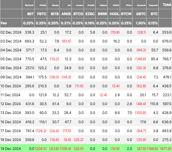この背景の中で、12月19日の大規模な資金流出は、来年に予想される利下げが2回のみであることを受けたウォール街の投資家の反応を表している可能性が高い。