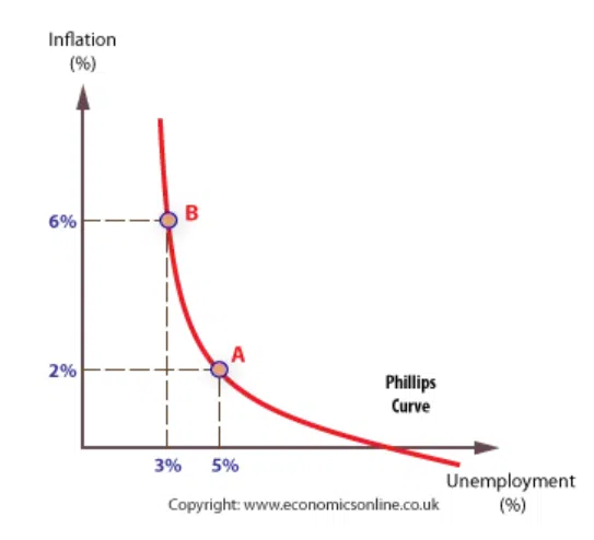 パンデミック以前は、FRBのような金融政策立案機関は、ニュージーランドの経済学者ウィリアム・フィリップス氏が開発したフィリップス曲線を用いて、与えられたインフレターゲットに最適な失業率を求めていた。同グラフによると、FRBの2%のインフレターゲットは5%の失業率に相当する。
