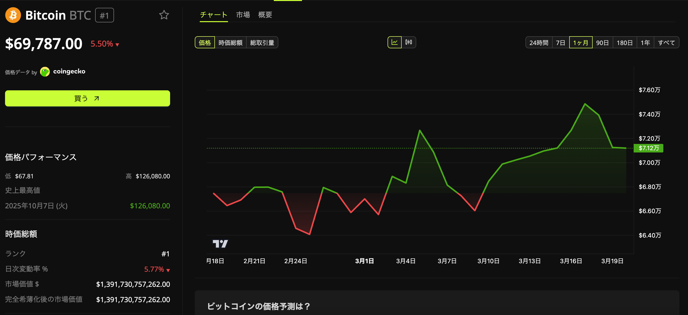ビットコインはこの報道が出た直後に74000ドル付近から約3.5%急落し、70000ドル付近まで下げた。その根底にある地政学リスクの深刻さは、翌20日に予定される日米首脳会談の議題からも読み取れる。高市早苗首相は20日、ワシントンでトランプ大統領と就任後初の会談に臨む予定で、イラン情勢の激化を受けてエネルギー安全保障が事実上の最重要テーマとなる見通しだ。日本政府はアラスカ産原油の増産協力と輸入拡大の方針をトランプ大統領に伝達することを検討しており、米国産LNGのさらなる輸入拡大も議題に上る方向で調整が進んでいる。日本の原油輸入の約9割が中東産であり、ホルムズ海峡の封鎖が長引けば国内エネルギー供給に甚大な影響が出るためだ。