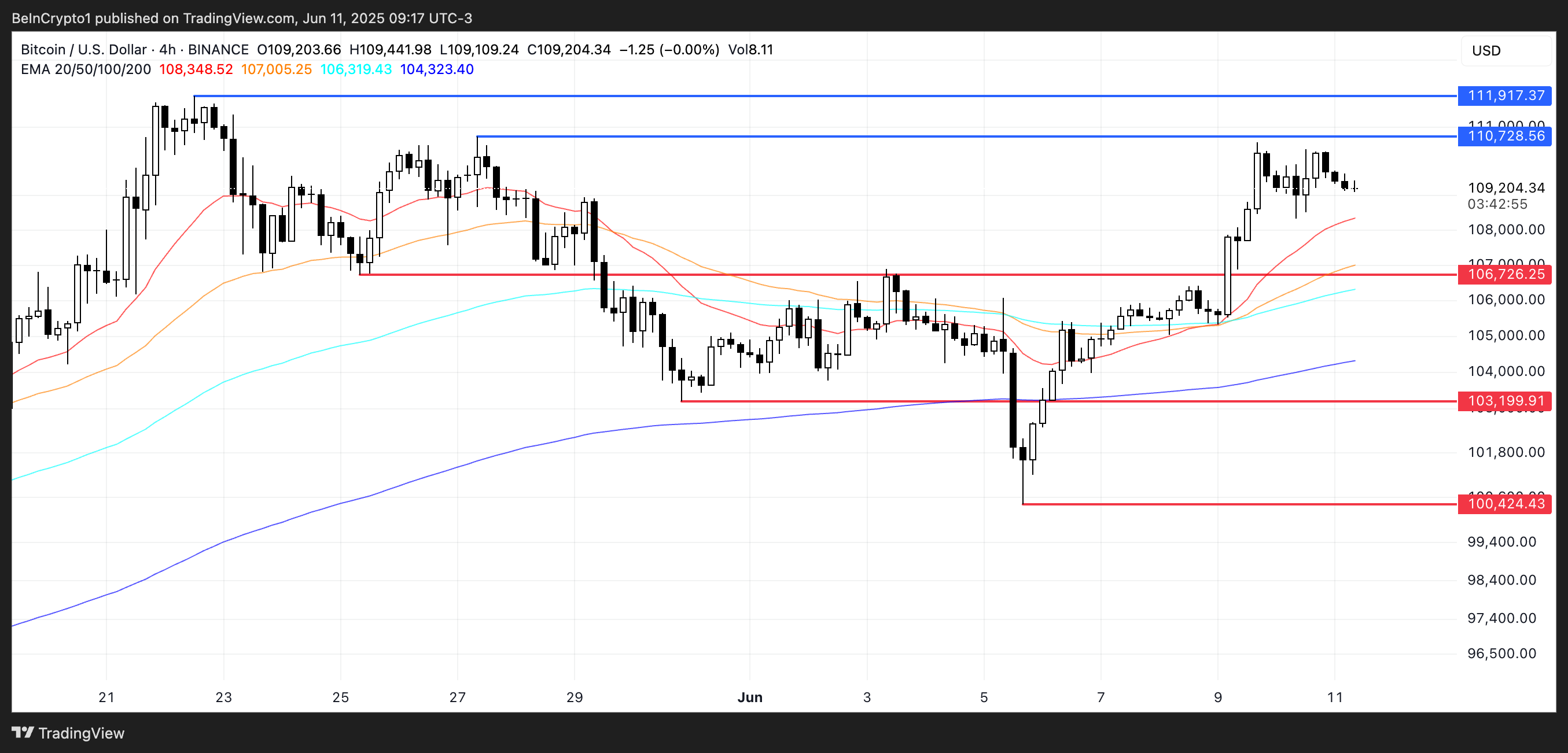 ビットコイン(BTC)は再び11万ドル近くで取引されており、過去7日間で約4.5%上昇している。価格は過去4日間、10万5000ドルを上回っており、市場の上昇傾向を強化している。