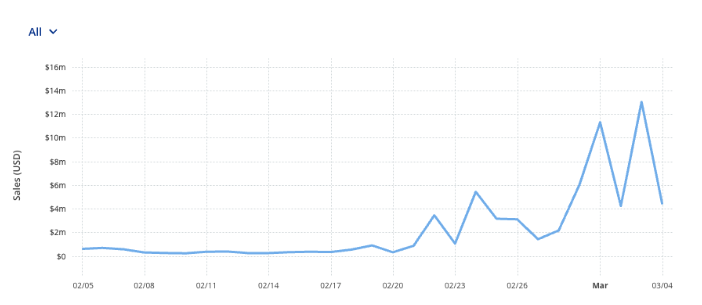 このコレクションは、4万7,000以上の取引で4,300万ドル以上の売上を記録している。