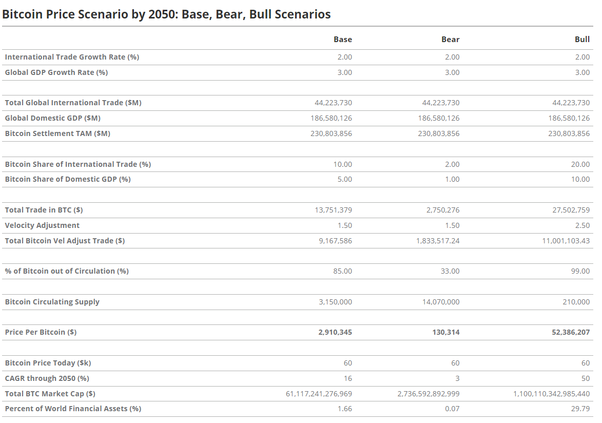 資産運用大手のVanEckは25日、ビットコイン価格が2050年までに5,238万ドルに達するという驚異的な強気シナリオを予測した。