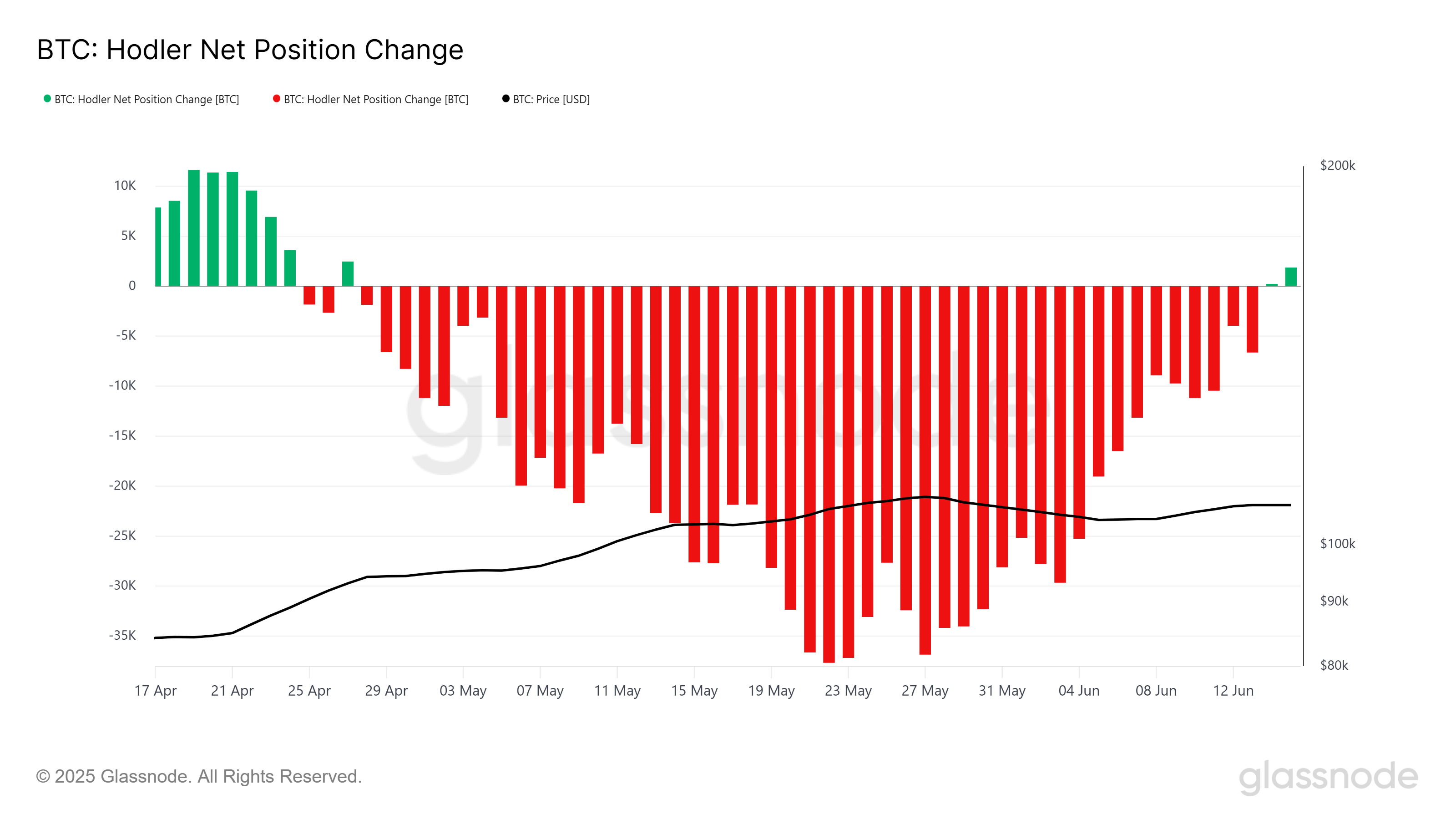 約2か月間の限定的な動きの後、ビットコインの長期保有者(LTH)の姿勢が変わり始めた。最近のHODLerネットポジション変化データは、流出が収まり、LTHが利益確定を停止したことを示している。この変化は、投資家の信頼が高まっていることを示す。