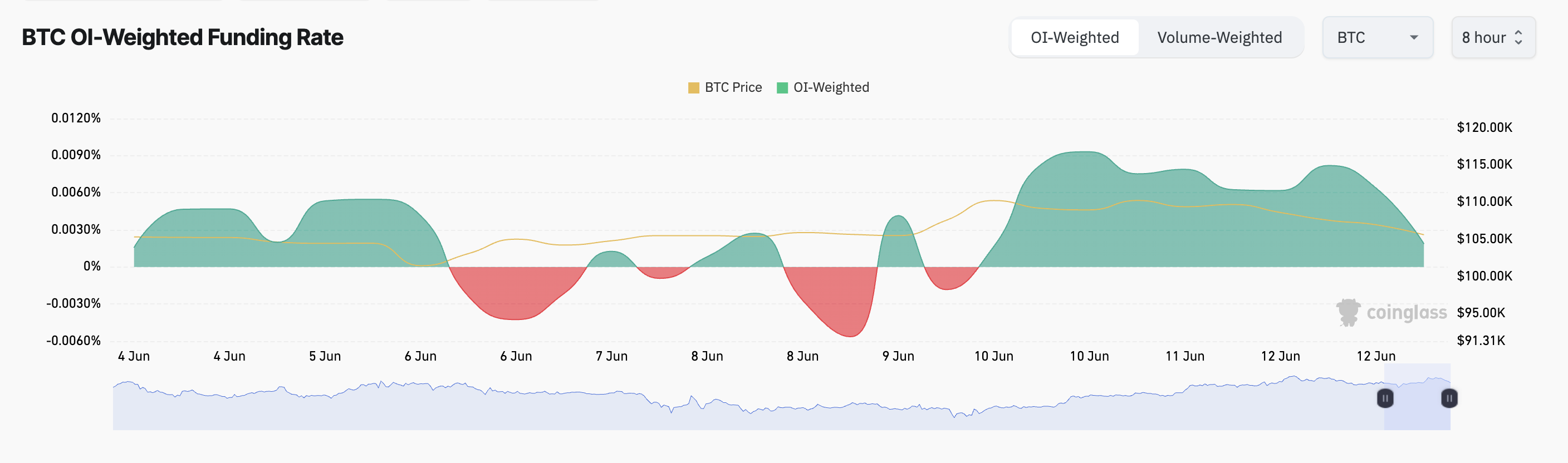 Coinglassによると、暗号資産取引所全体でのBTCのファンディングレートは、最近の価格の逆風にもかかわらず依然としてプラスである。本稿執筆時点で、これは0.0019%である。