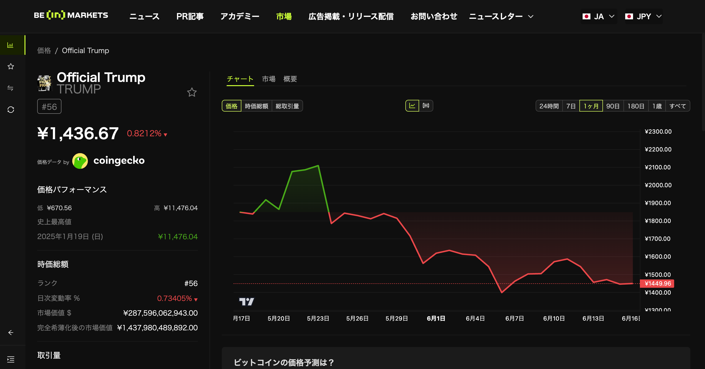 しかし、同社にとってはタイミング悪く、イスラエルとイランの紛争への対応やロサンジェルスでの移民政策に反対する暴動などから、TRUMPの価格は現在、下落傾向だ。