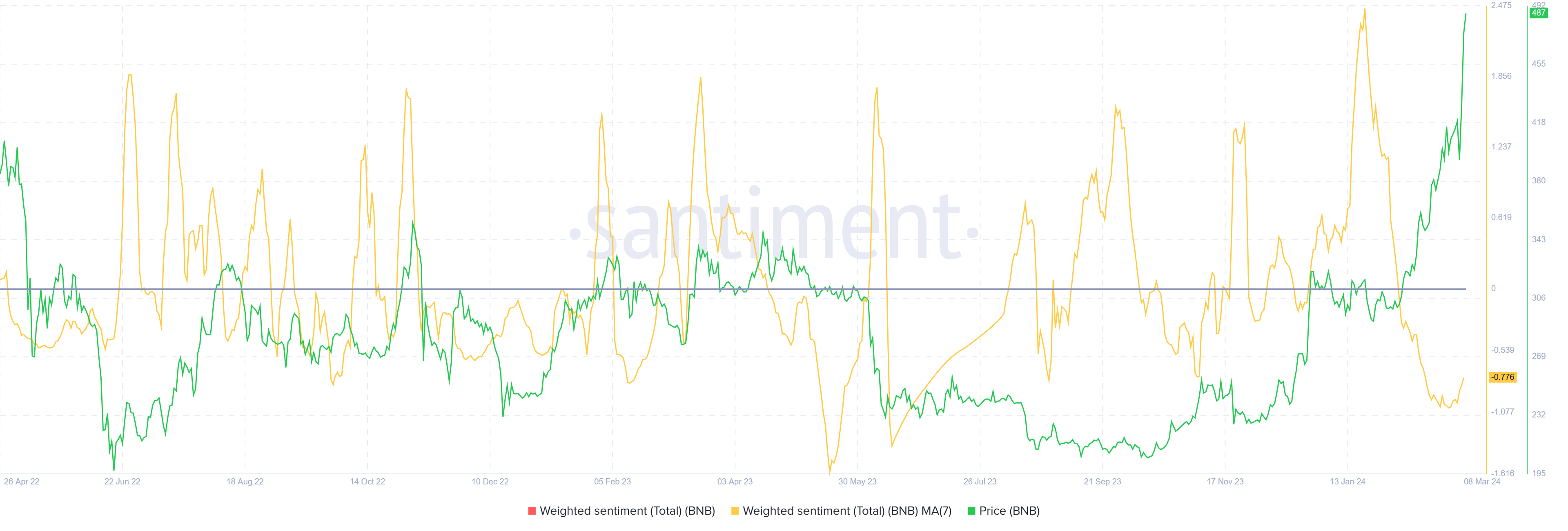 後者の条件はBNBに当てはまり、週平均センチメントは9ヵ月ぶりの低水準にある。