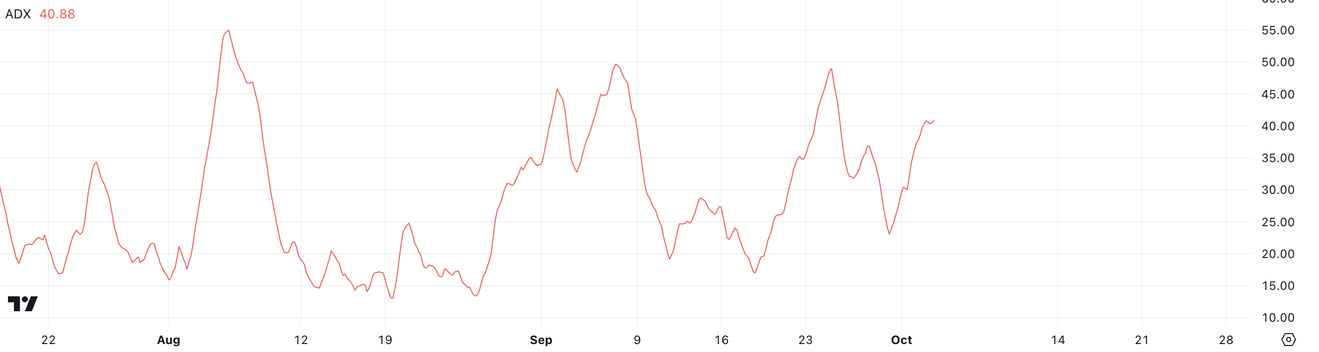 この下落は、現在40.88を示すADX(平均方向指数)によってさらに支持されています。