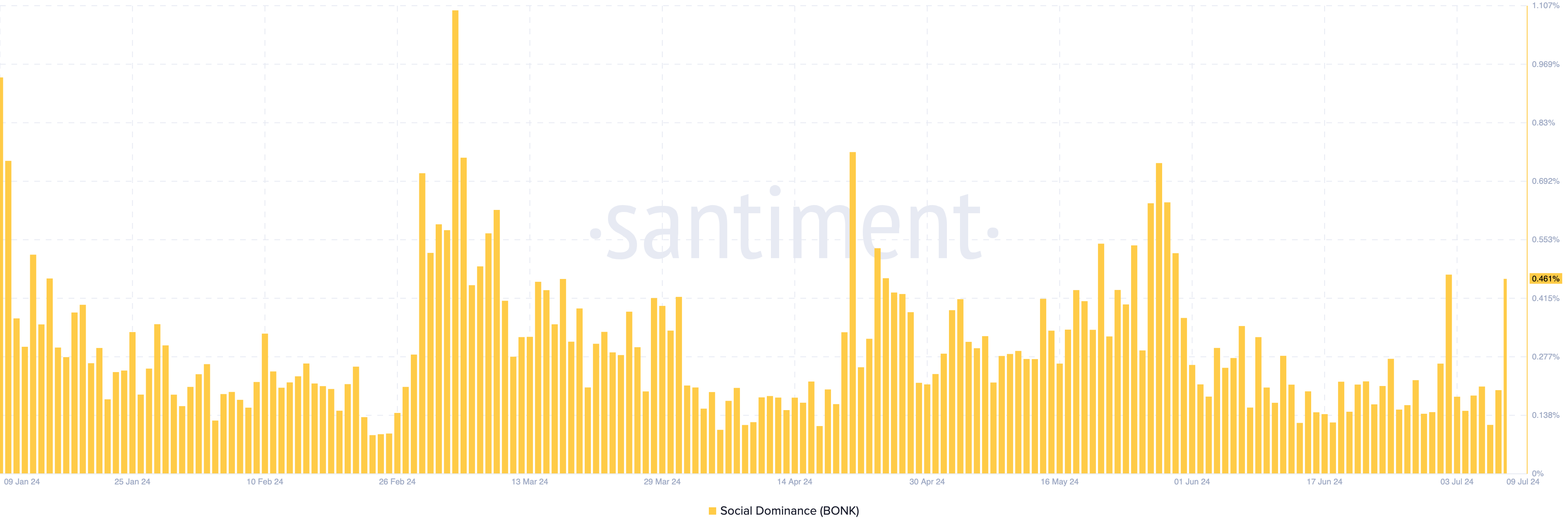 上の画像から、ソーシャル優位性は0.416%であり、ミームコインに関連する言及や議論の顕著な増加を反映している。