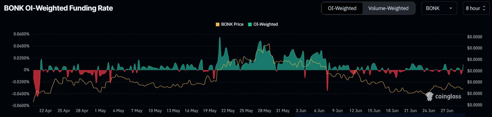 BONK価格はここ数週間で大幅に下落し、2カ月ぶりの安値まで下落した。