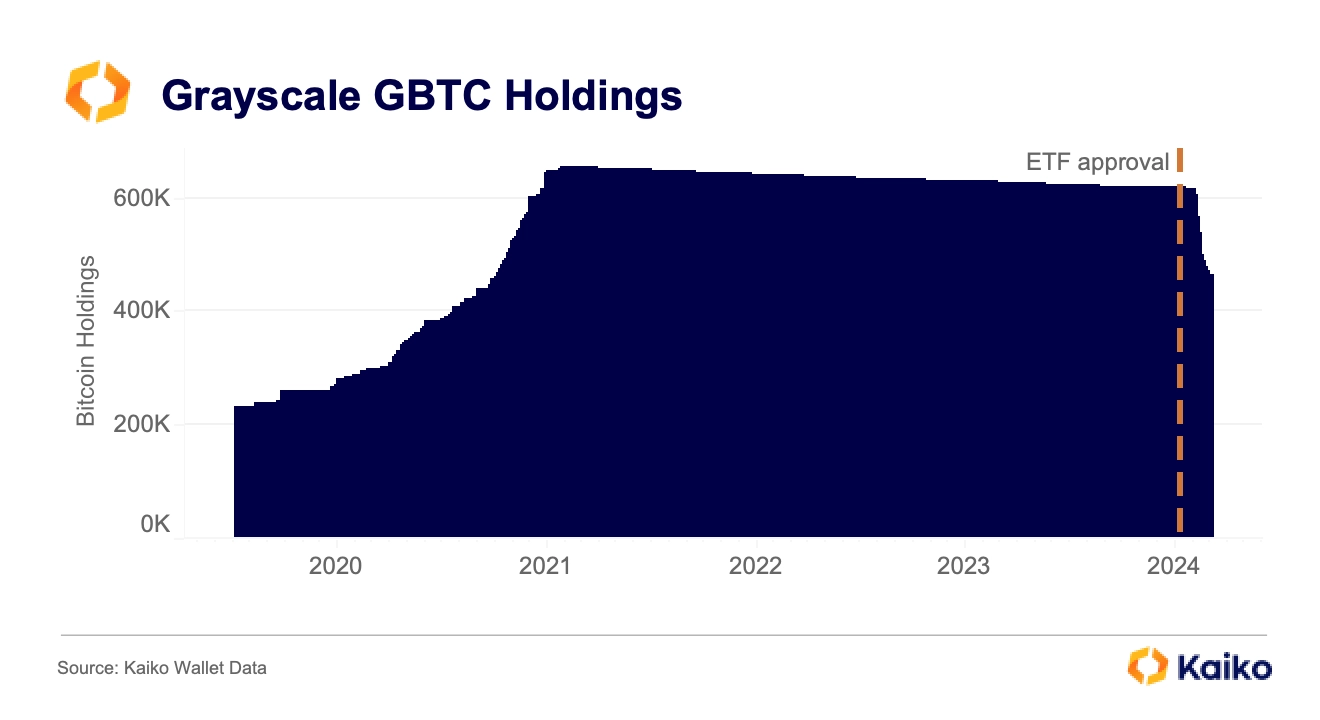暗号資産リサーチ会社Kaikoの22日のレポートによれば、Grayscaleの流出は他のETFへの流入によって十分に相殺されており、29取引日中20日が純流入を示している。同社はビットコインの供給はETFに流れ続けており、これらの製品への一貫した需要を示唆しているとし、流出が減速するにつれてビットコインは上昇ラリーを始めていると述べた。