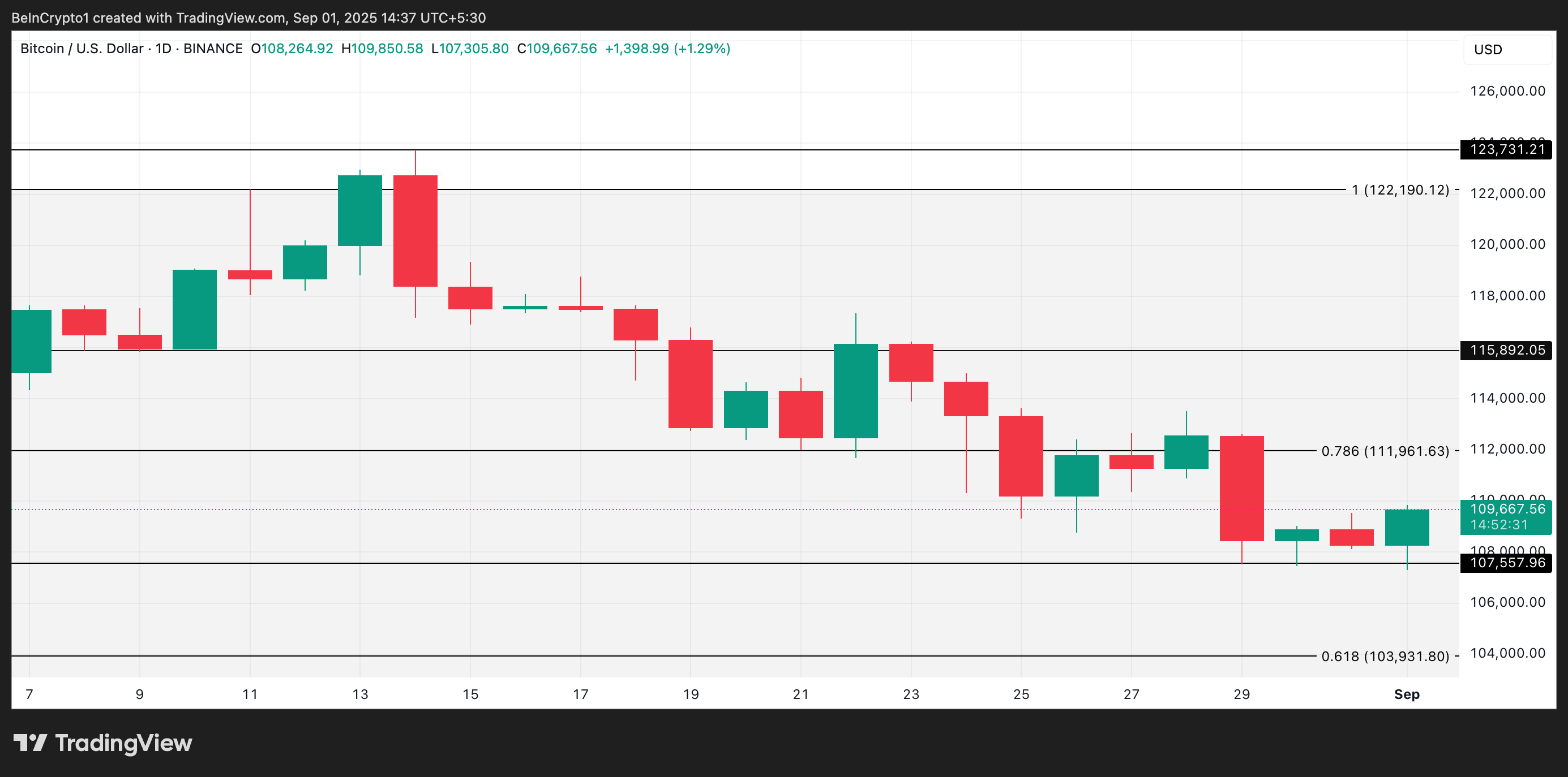 ビットコイン(BTC)は8月14日に過去最高値の12万3731ドルを記録して以来、軟調な展開が続いている。その後の数週間で約10%の価値を失った。