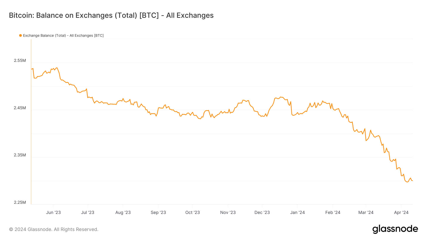 Sponsoredこれは、2月以来一貫して蓄積されていることが裏付けている。投資家は自分の財布に大きく追加しており、4月の最後の11日間だけで、10,284BTC以上、7億2,800万ドル相当が取引所から買われている。