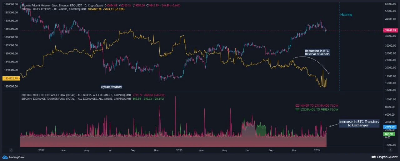分析では、マイナーが中央集権型取引所へのビットコイン移動を増やしていることを指摘している。同社は「マイナーから取引所へのビットコイン流れは、取引所からマイナーへの流れの3倍に上り、マイニングコミュニティからの強い売却圧力を示している」とした。マイナーは慣例に基づき、半減期を前にして次なる投資機会を見据えた売却に入る傾向がある。