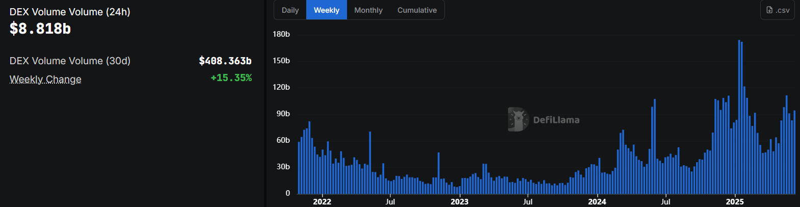 特に、このタイミングは、分散型取引活動への関心が再燃し、過去1週間で15%以上増加したことと一致している。