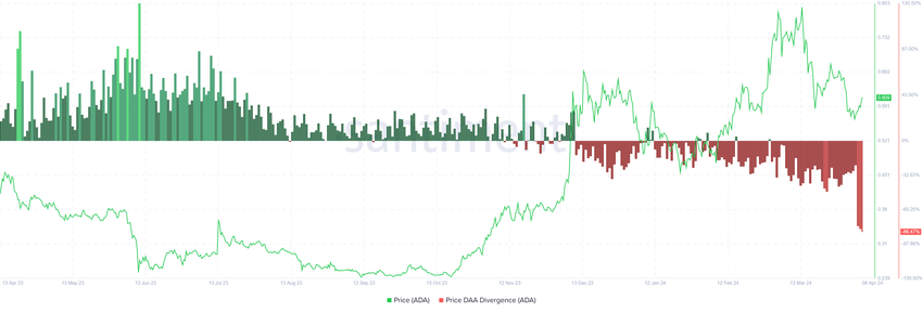 しかし、価格DAAダイバージェンスで指摘されているような売りのセンチメントが強まれば、ドローダウンが発生する可能性がある。その結果、カルダノ価格は下落ウェッジパターンと強気見通しを無効にし、ADAを0.500ドルまで下落させるだろう。
