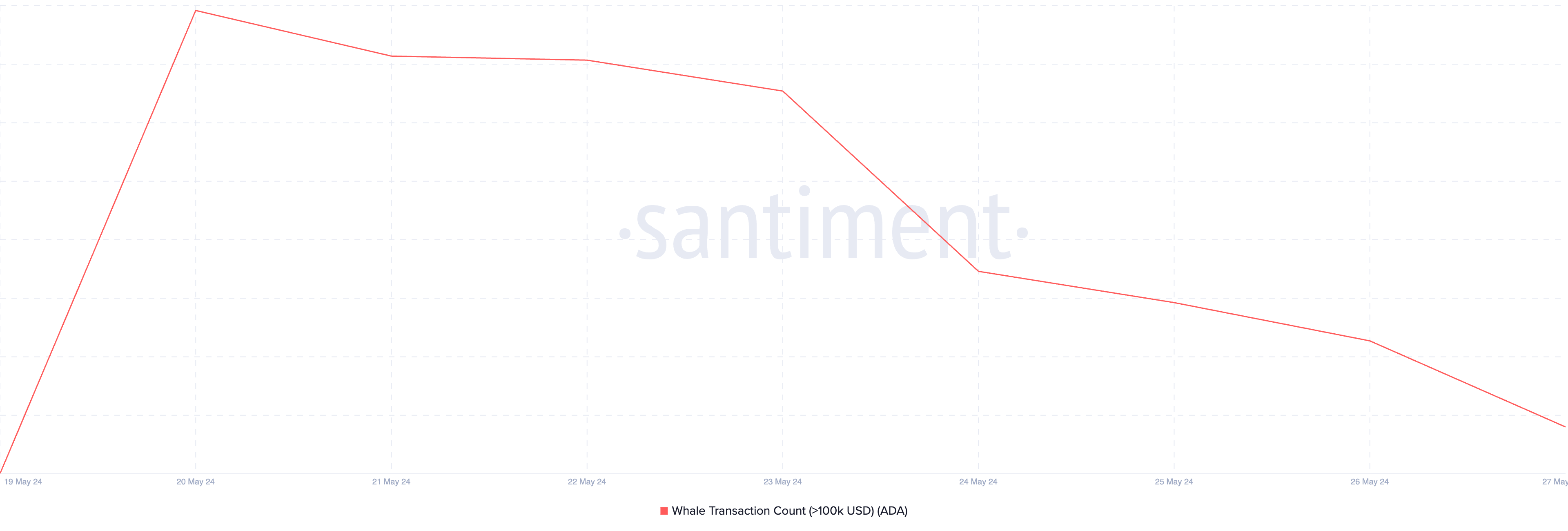 検討中の週は、ADAクジラの活動も下落した。その期間中、完了した10万ドル以上の価値のある1日のADA取引数は69%減少した。