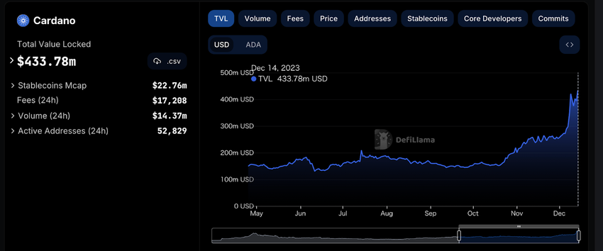 CardanoのTVLは、本日4億3,000万ドルを超えるという史上最高値を更新し、Cardanoのチェーンが、世界トップ10のDeFiネットワークの1つとして位置付けられることとなりました。