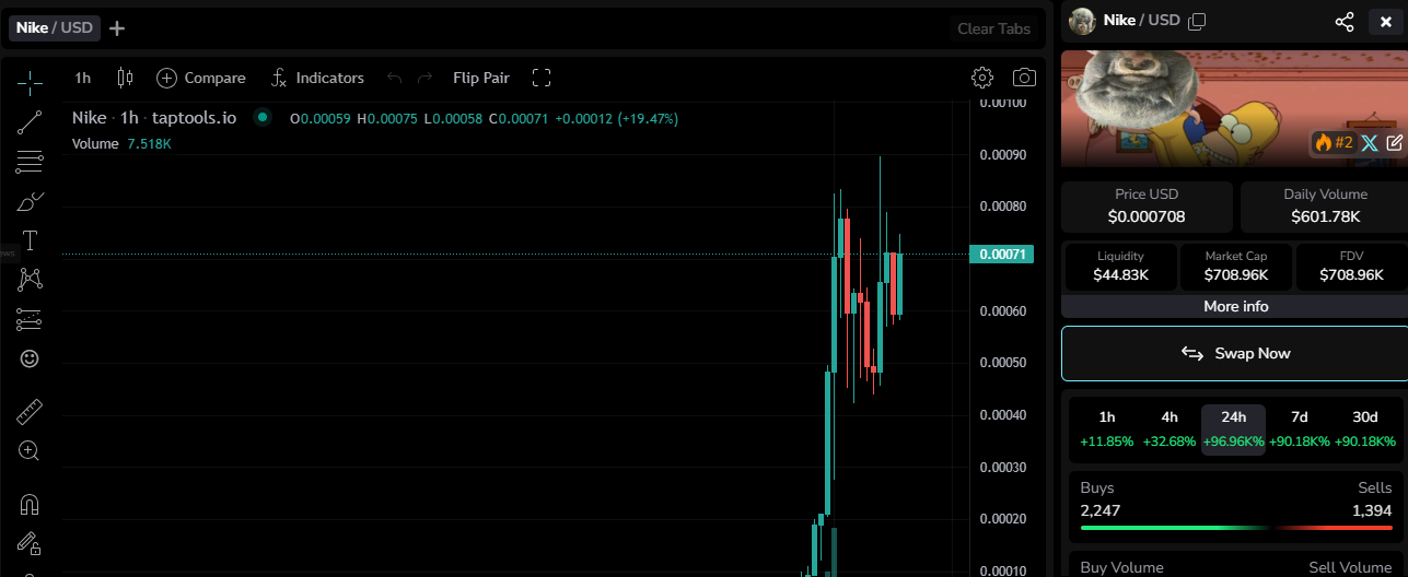カルダノの幹部チャールズ・ホスキンソン氏は、自身のSNS上でナイキのミームコインを宣伝している。ブタをテーマにしたこの新しいトークンの時価総額は、報道時点では70万8000ドルを超えて急増している。